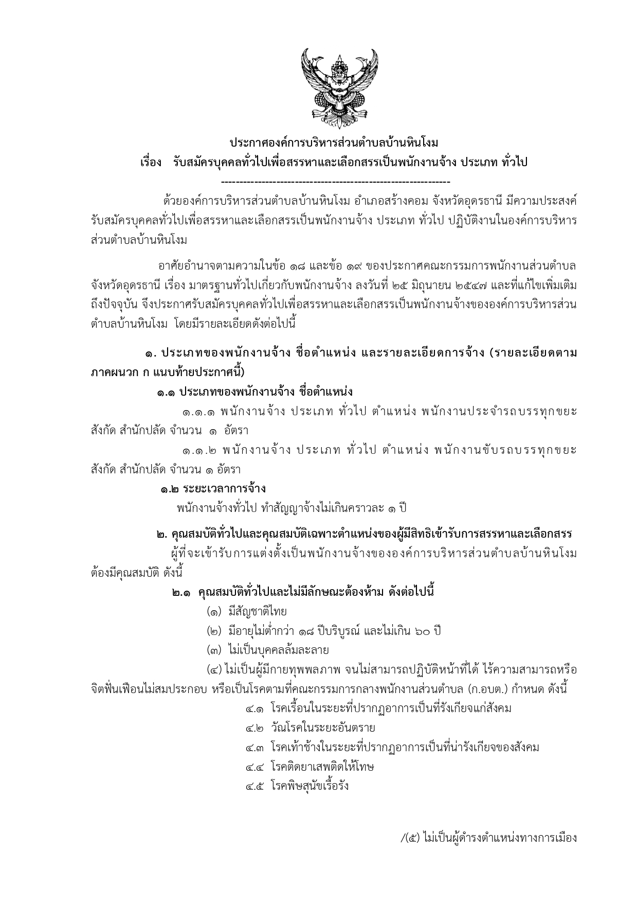 ประกาศ รับสมัครบุคคลทั่วไปเพื่อสรรหาและเลือกสรรเป็นพนักงานจ้าง ประเภท ทั่วไป